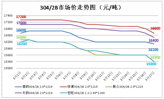 其中,304冷轧大有领跌的架势,跌幅较为明显,多日来基本上是处于连降低位盘整的状态。今日伦镍上行遇阻,更是令市场信心有所缺失,钢厂方面普遍顺应市场挺价不再,现货市场价格普遍走低,各方重心均偏向资金面回笼操作。